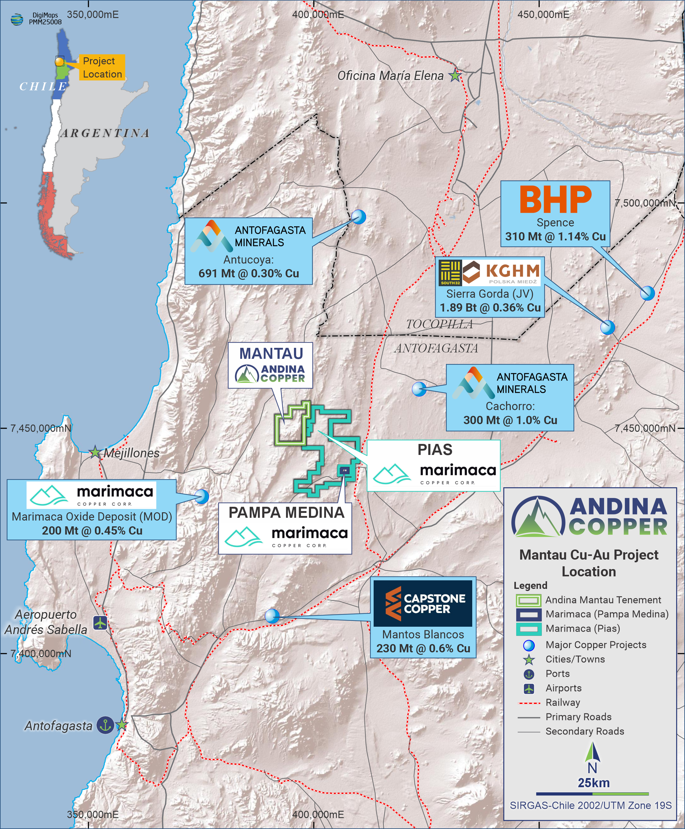 Potential identified for IOCG and stratabound Manto style copper and gold mineralization similar to Marimaca Copper Corp’s (TSX-V:MARI) recent nearby Pampa Medina sulphide copper discovery1 (refer Figure 1)